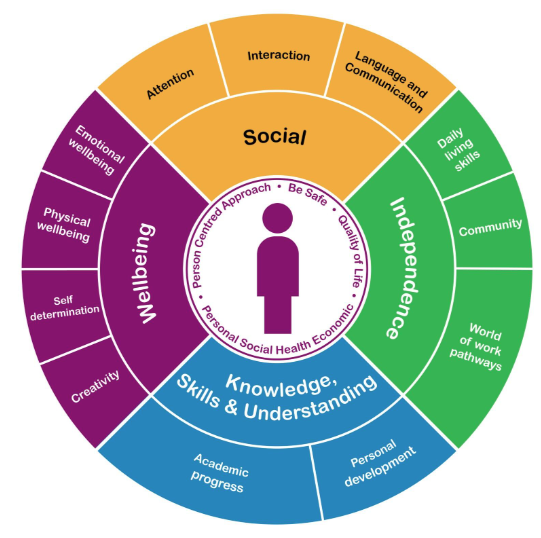 Teachers work closely with families and professionals to plan and track the small but important steps of progress that move learners towards their EHCP outcomes. The next pages of our website explain each colour-coded area in more detail, with examples and photos showing what this looks like in daily school life.