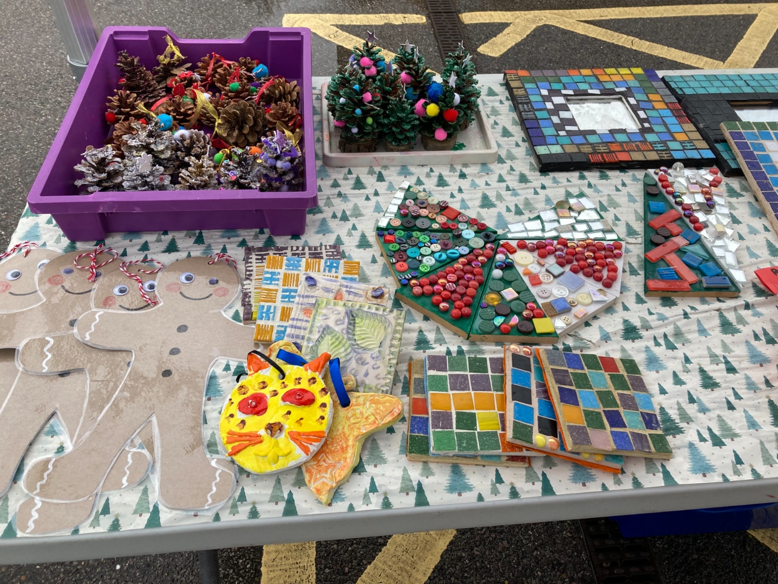 Photos of the annual Endeavour market where students, staff, families/carers and the local community come together to enjoy items made by the young people, Carol singing around the fire pit and the amazing snow machine.
