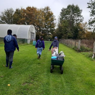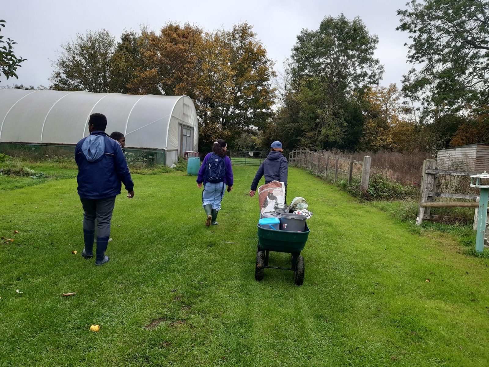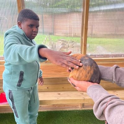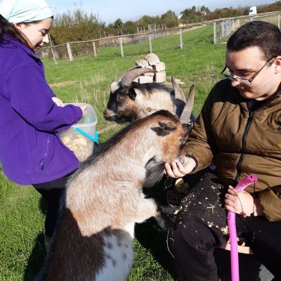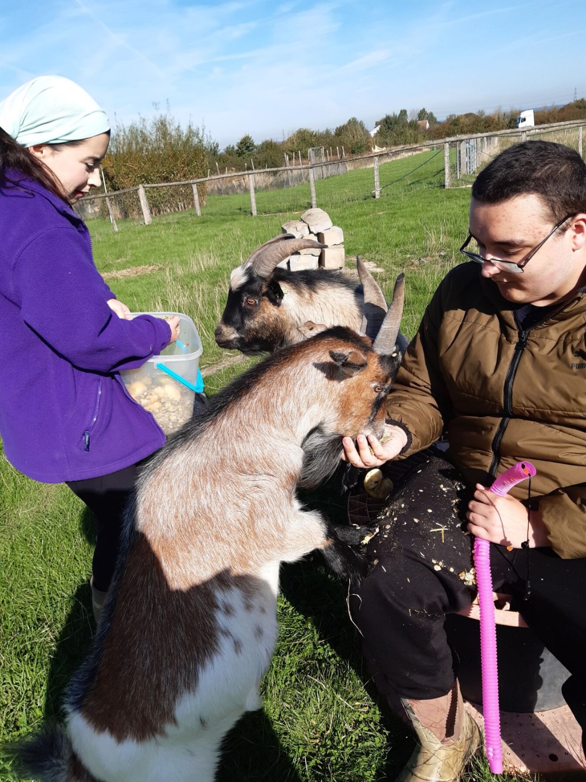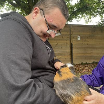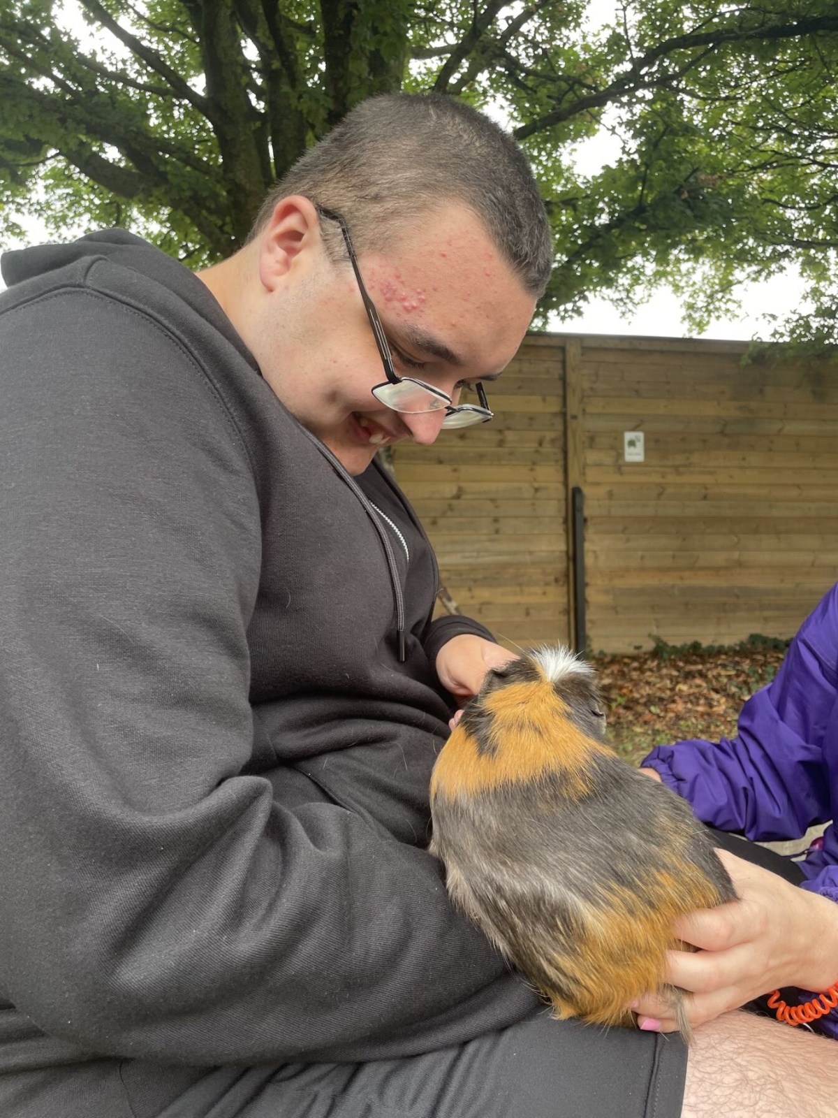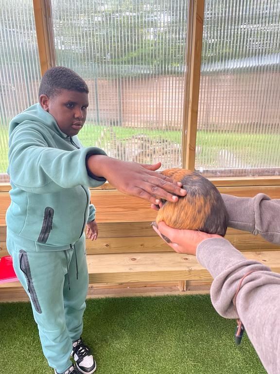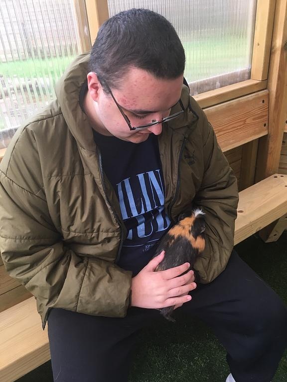 These photos show our learners engaging in tasks on their Animal care pathway with our school guinea pig and the animals at Vana Farm.
