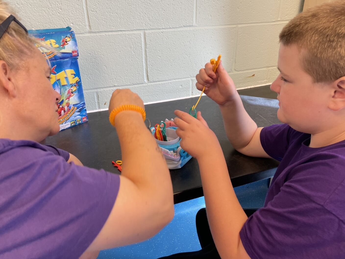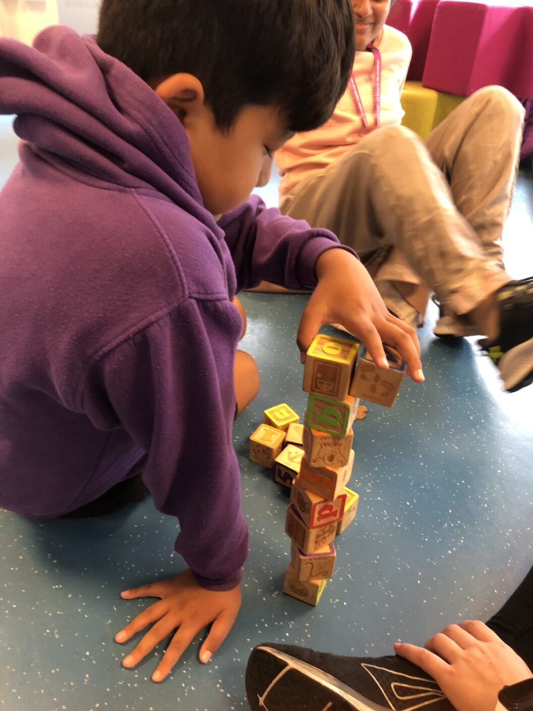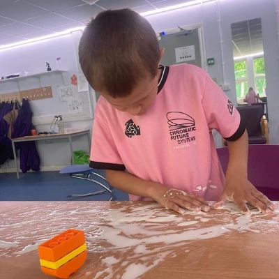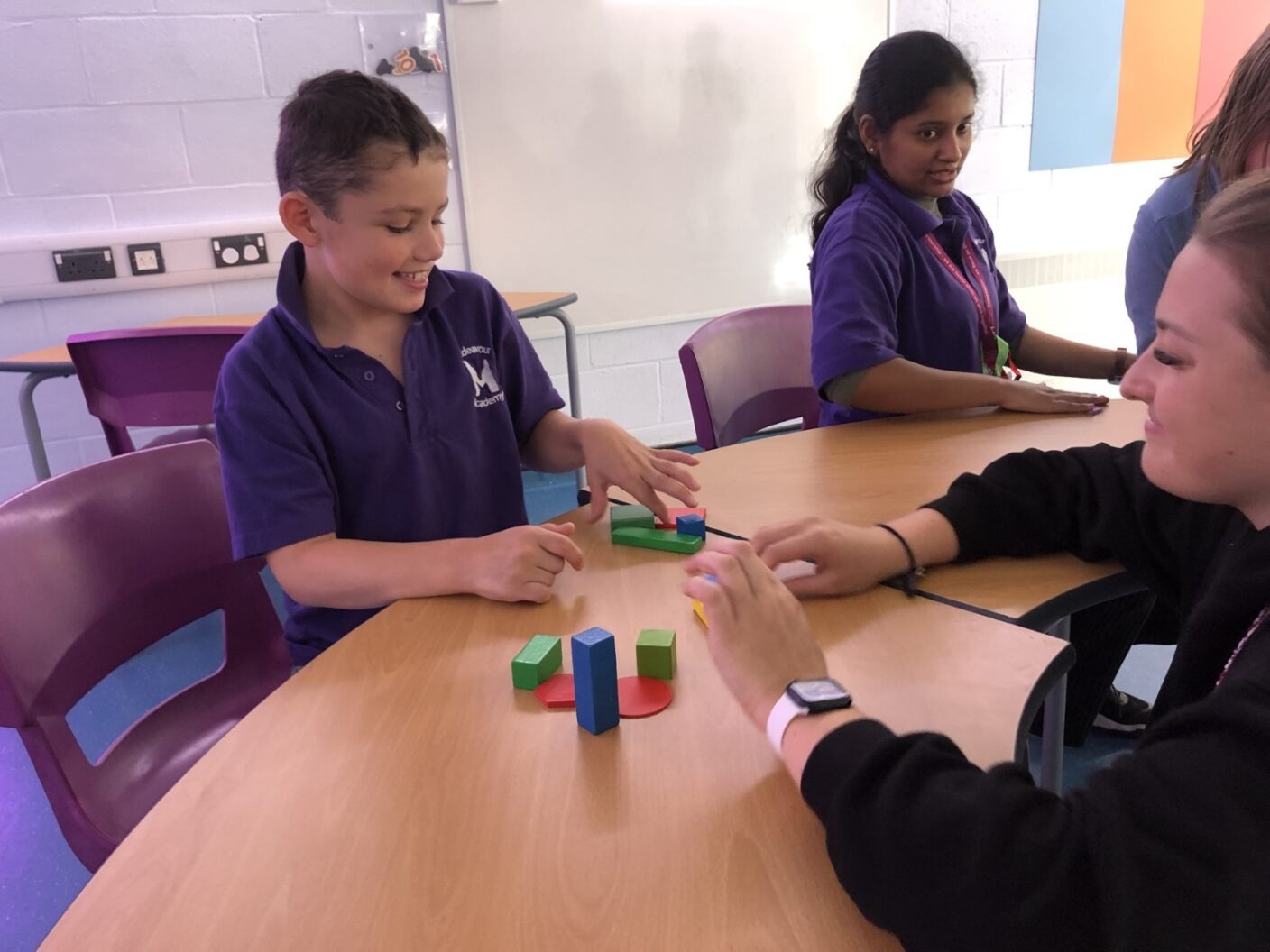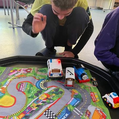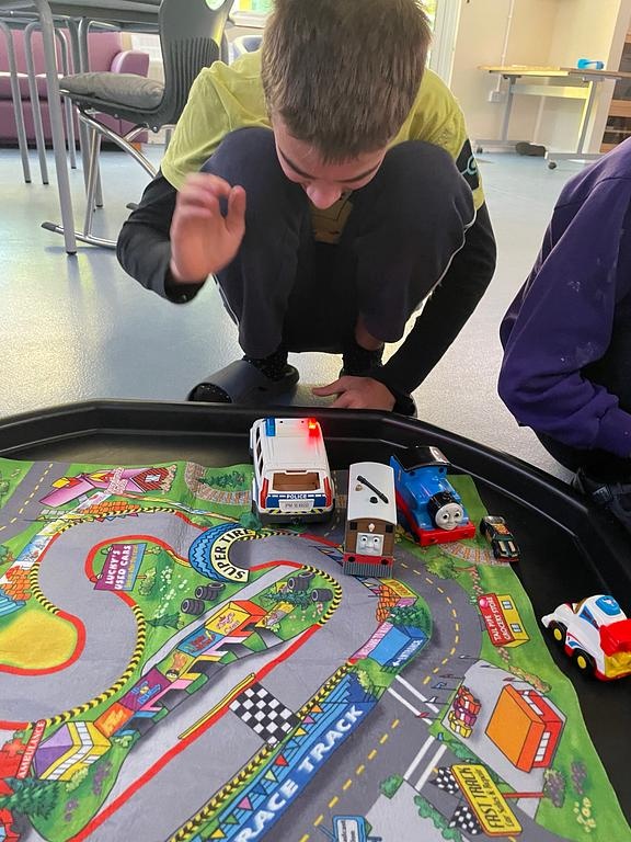 These photos show learners engaging in Attention Autism 'bucket' and play sessions to develop their focus and attention skills for learning activities.
