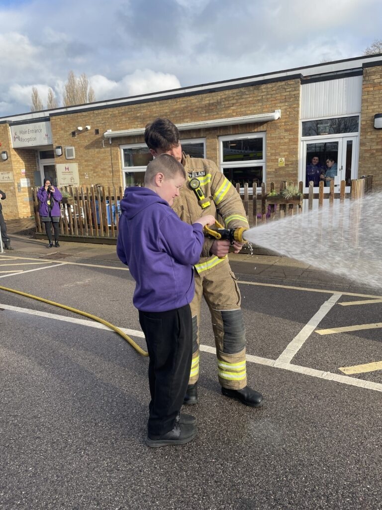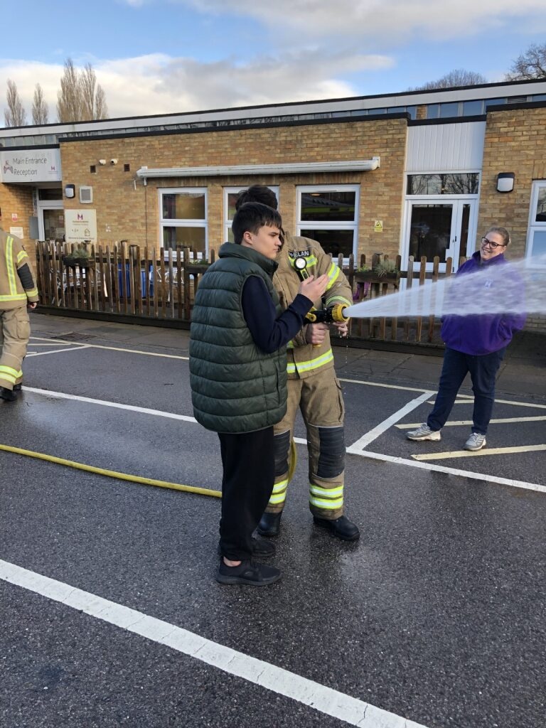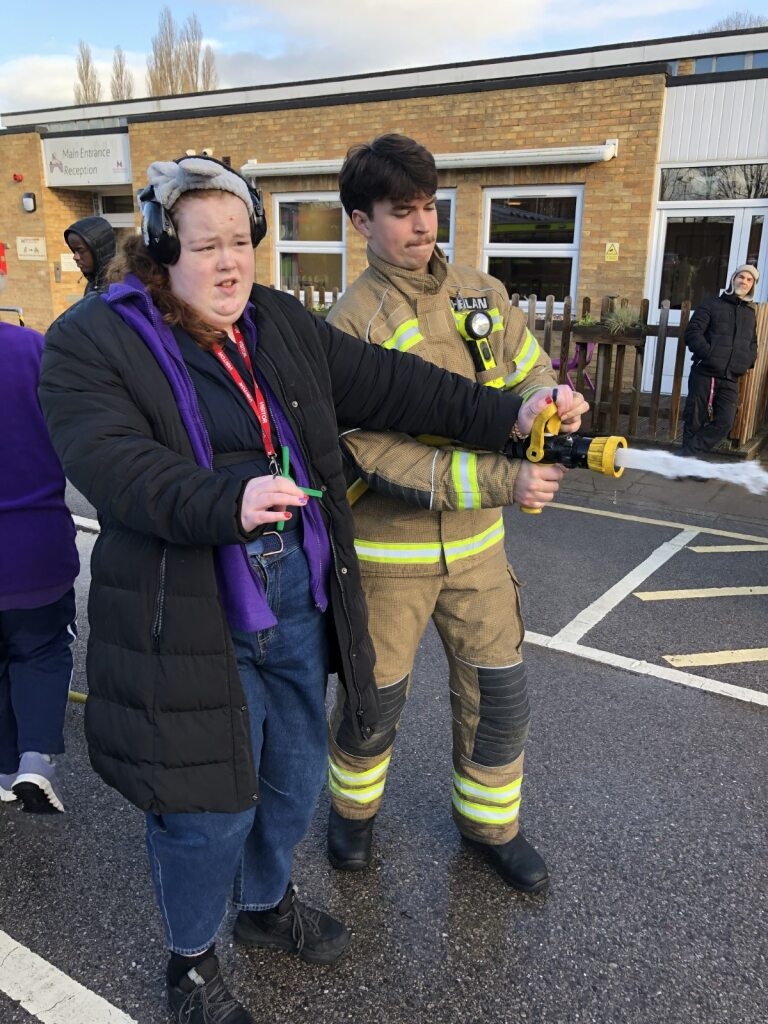 As part of our World of work pathways, learners had the opportunity to learn about the role of the Firefighters from Red Watch Crew at Slade Fire Station by exploring the fire truck and life saving equipment. Using the hose was a clear favourite.