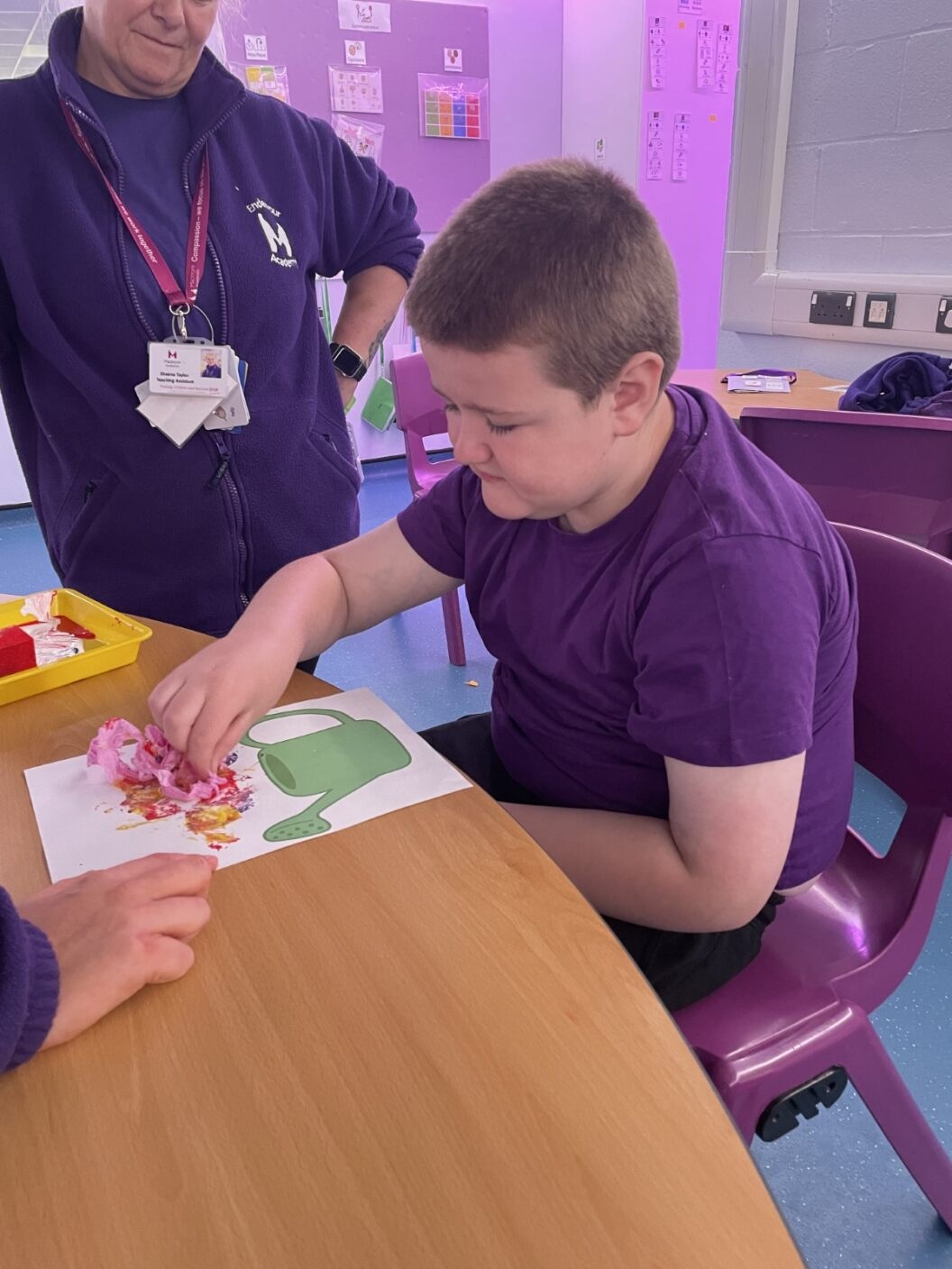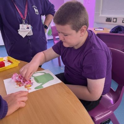 Photos show learners engaging in a range of art and craft activities that link to other curriculum areas like sensory stories, fine & gross motor skills and making choices.