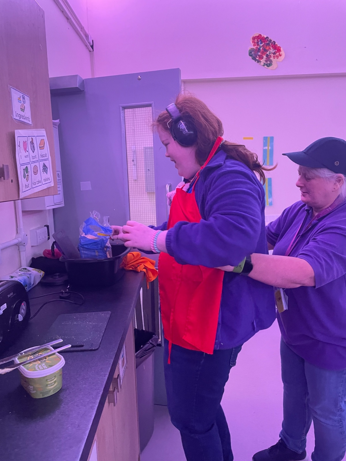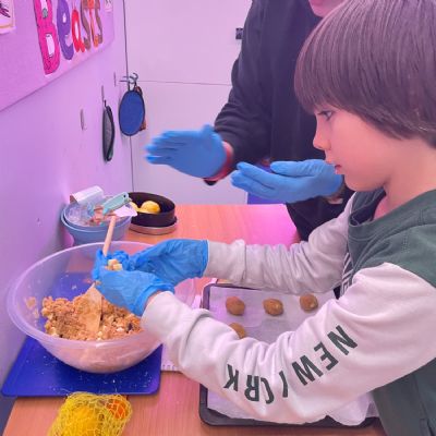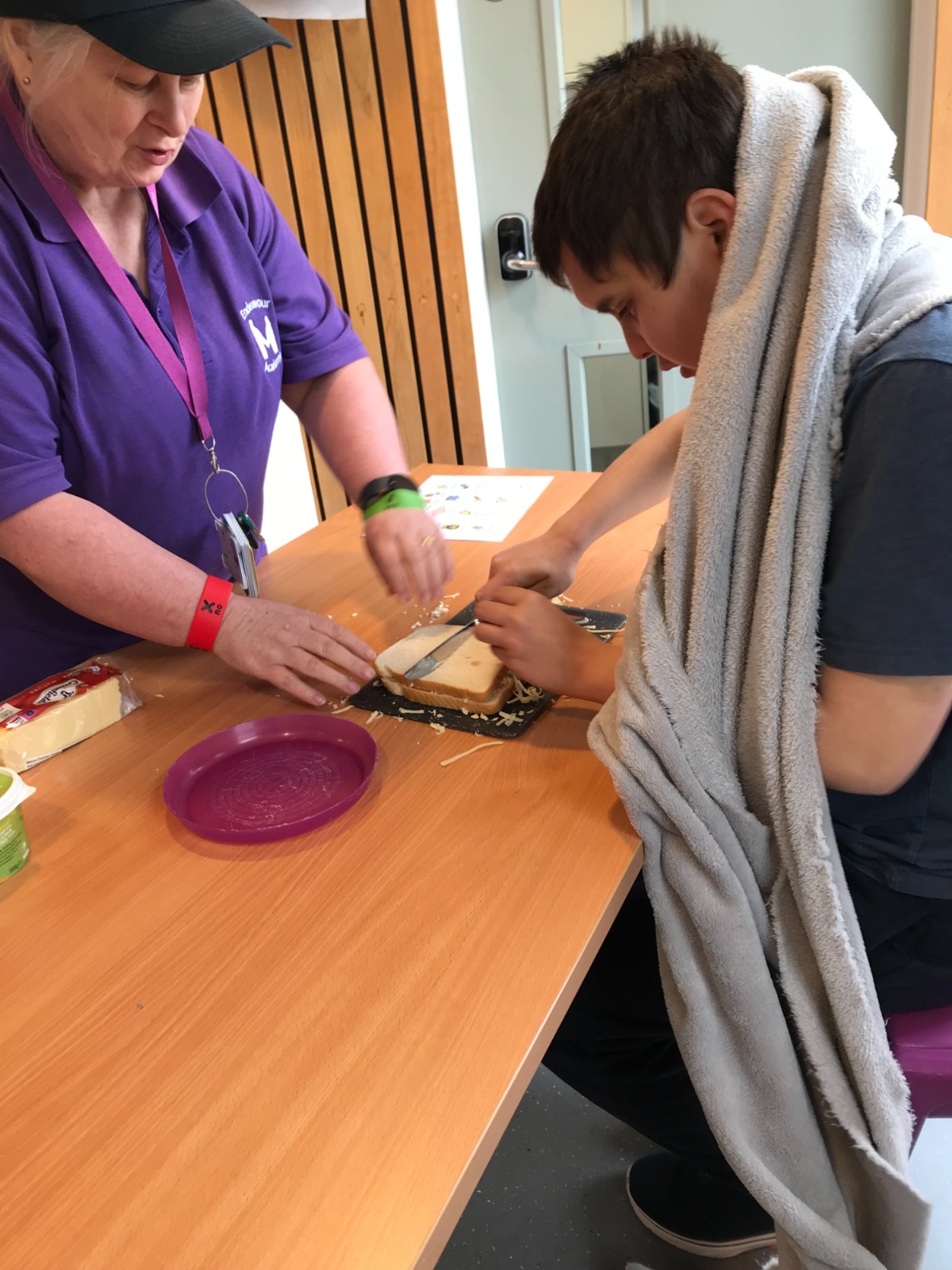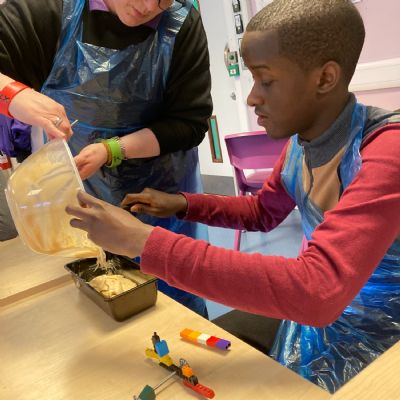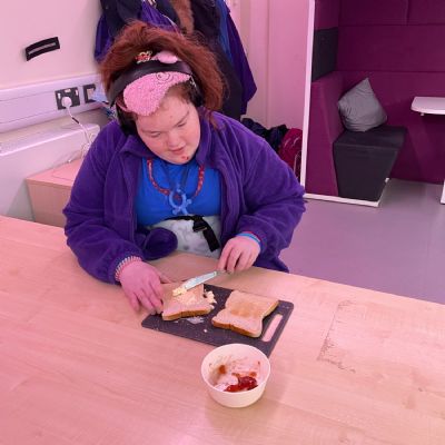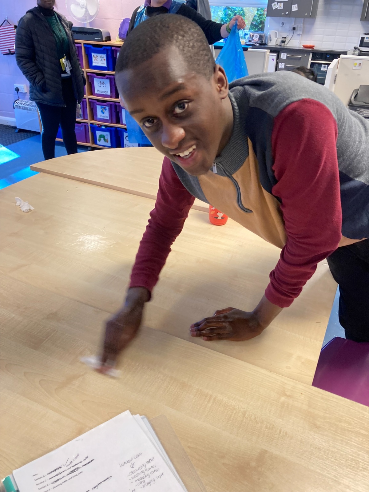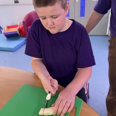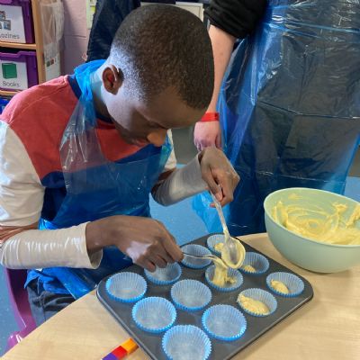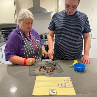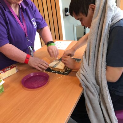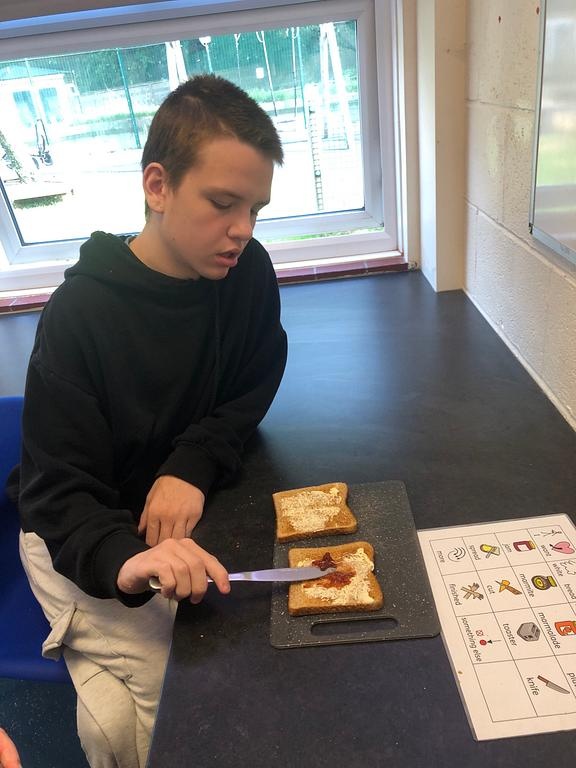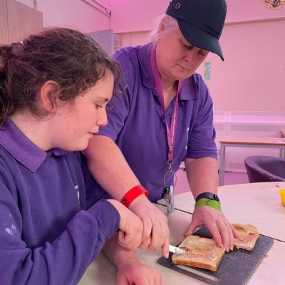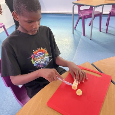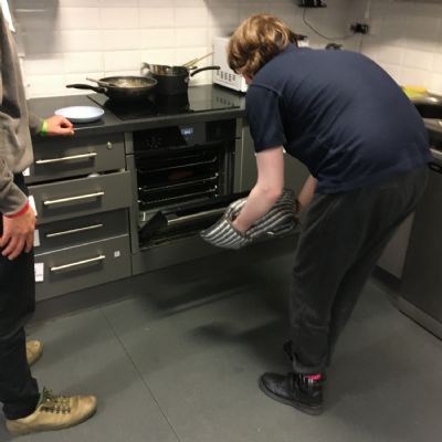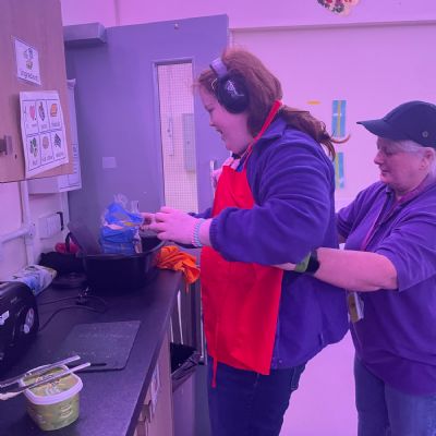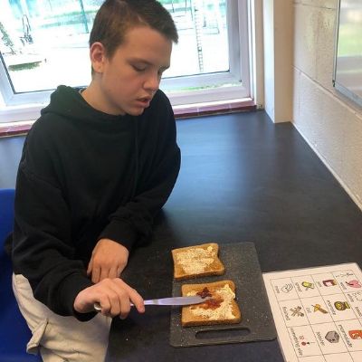 Photos showing our learners engaging in activities on the Catering pathway. This includes hygiene, shopping and learning food prep skills in the classroom before generalising them to the Hub (Endeavour's canteen) and throughout their time in our Post 16 class.
