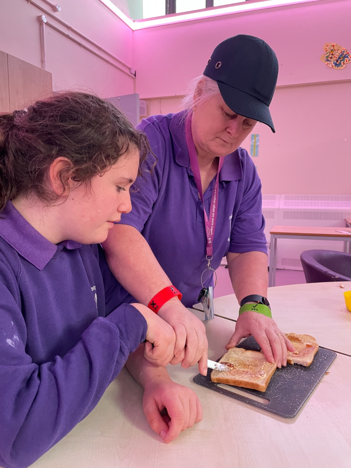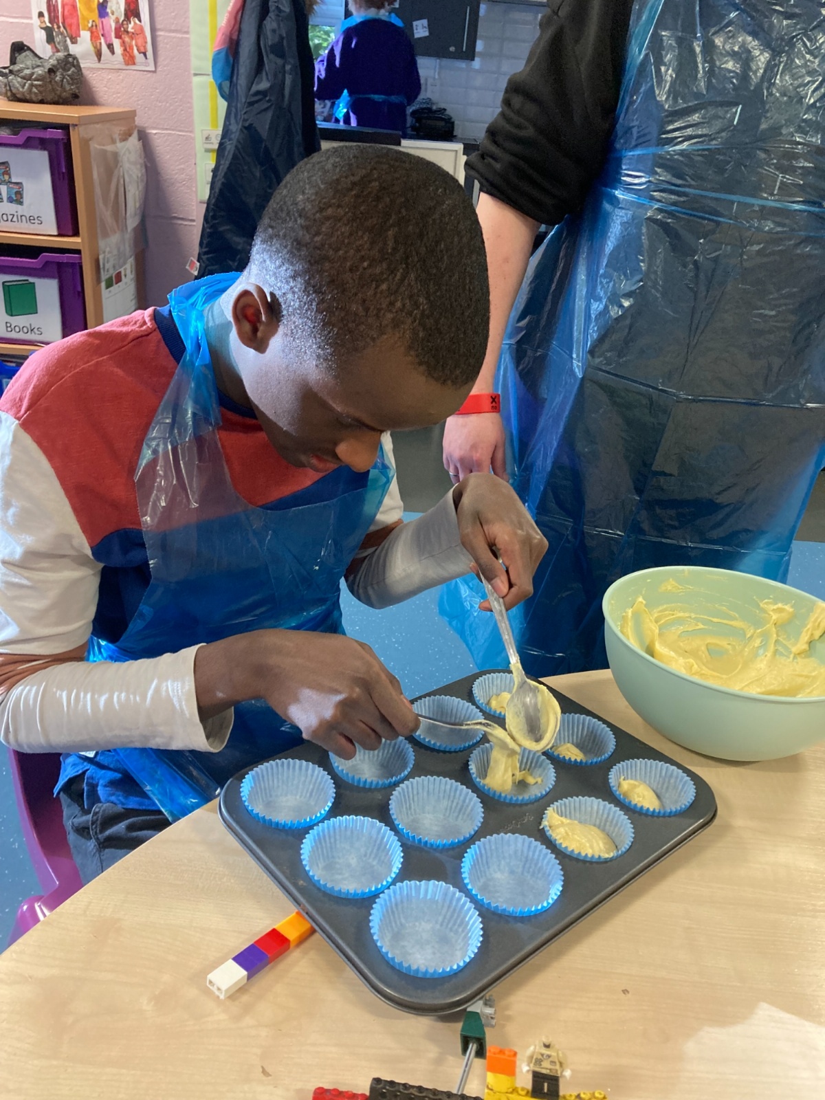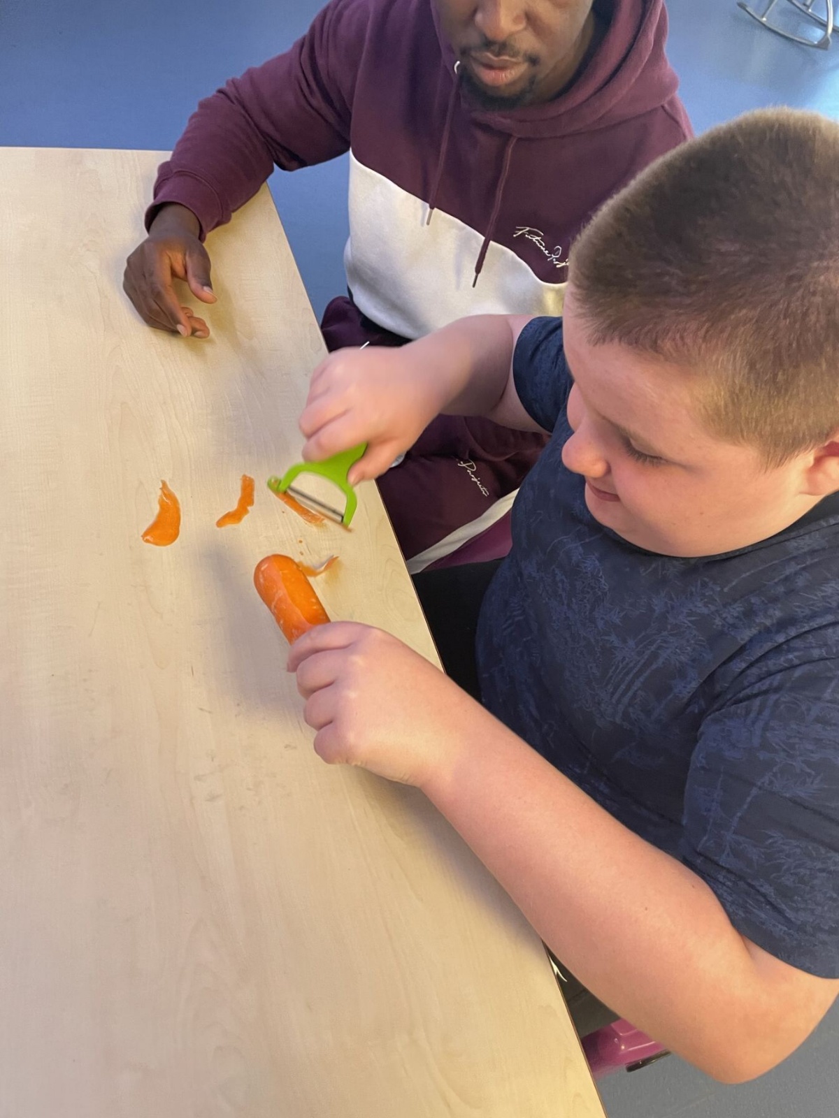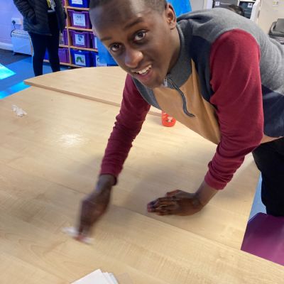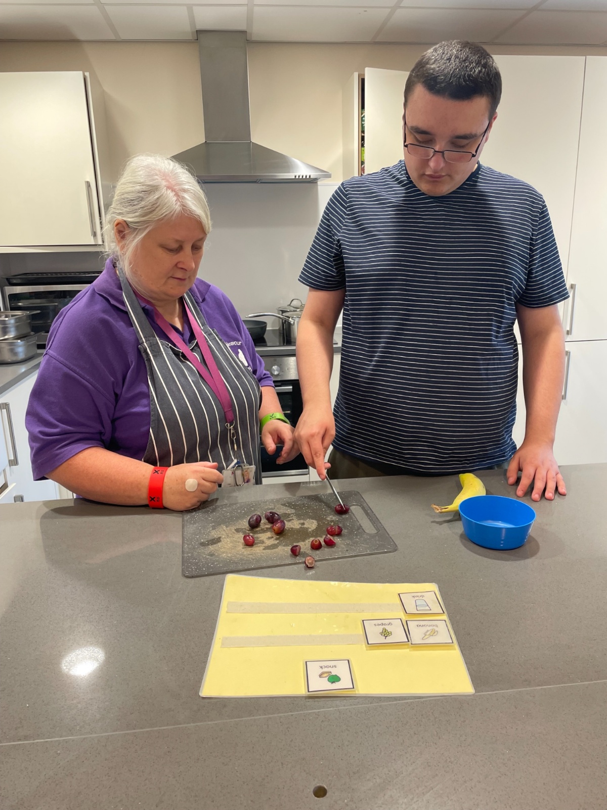 Photos showing our learners engaging in activities on the Catering pathway. This includes hygiene, shopping and learning food prep skills in the classroom before generalising them to the Hub (Endeavour's canteen) and throughout their time in our Post 16 class.