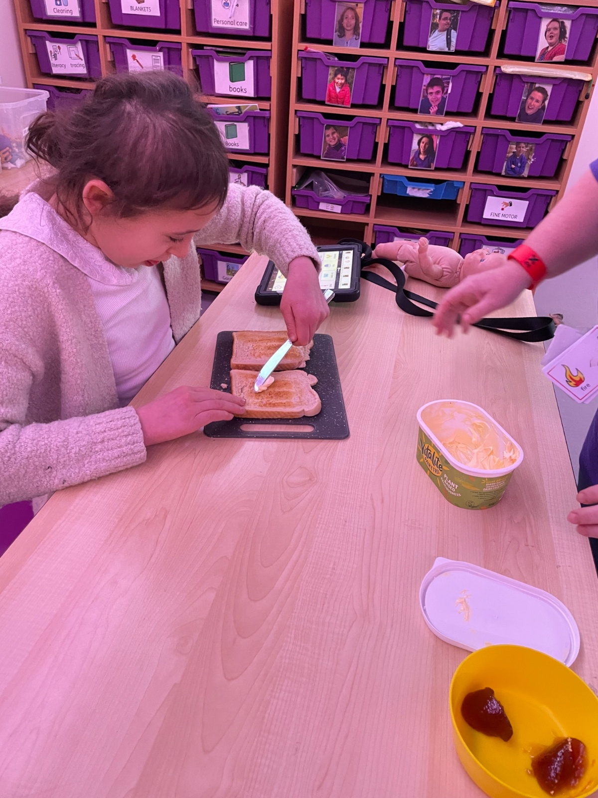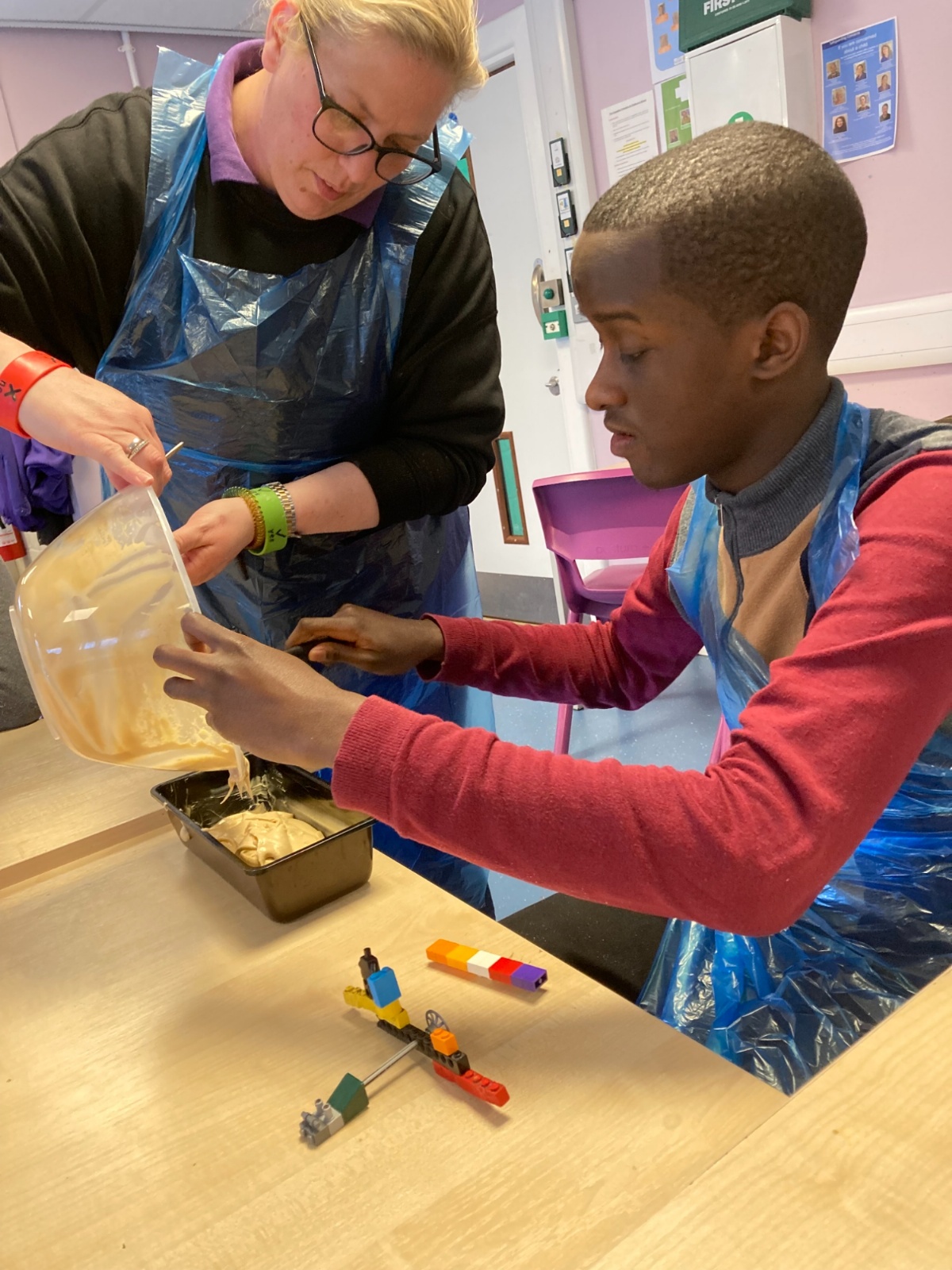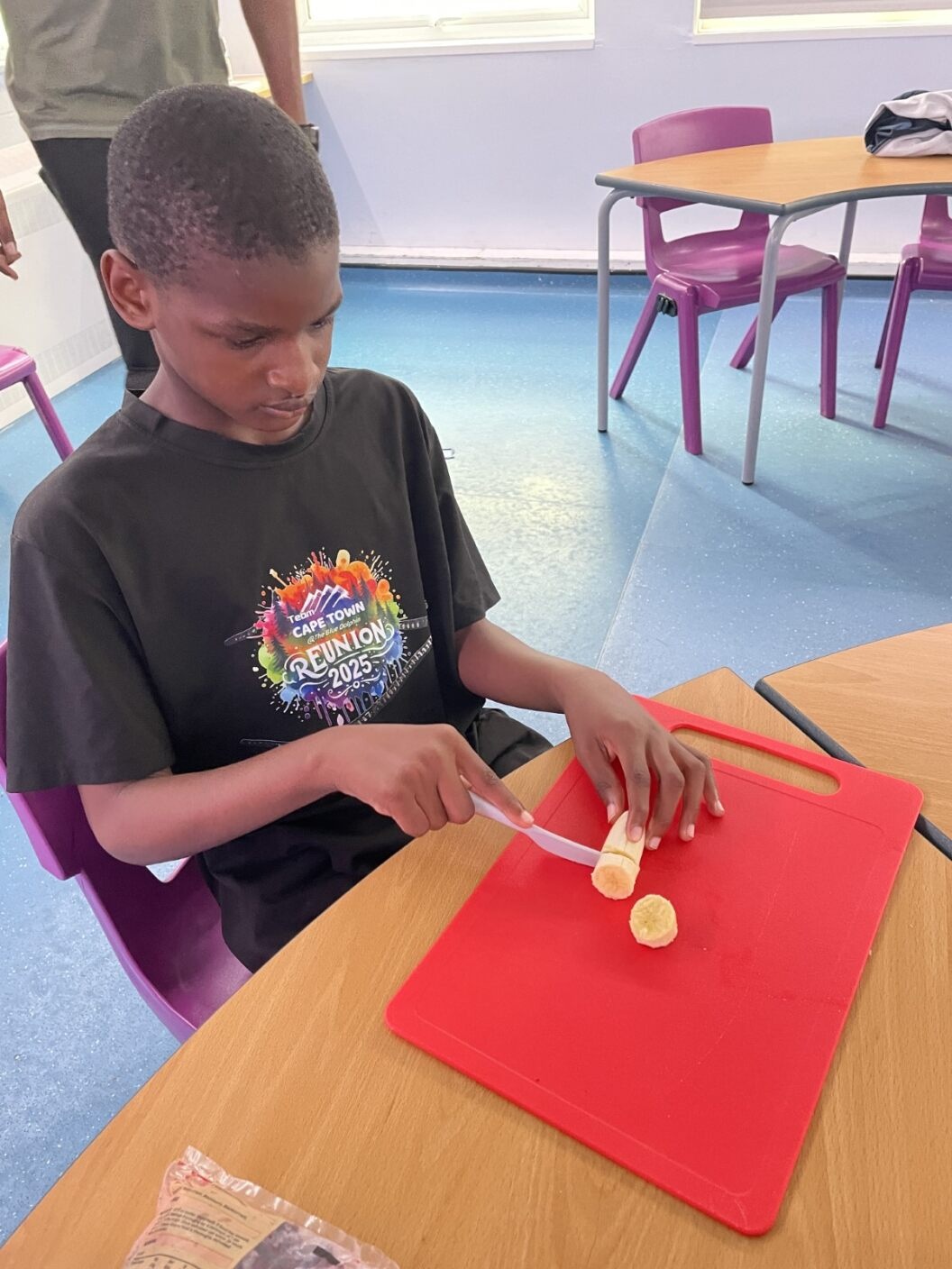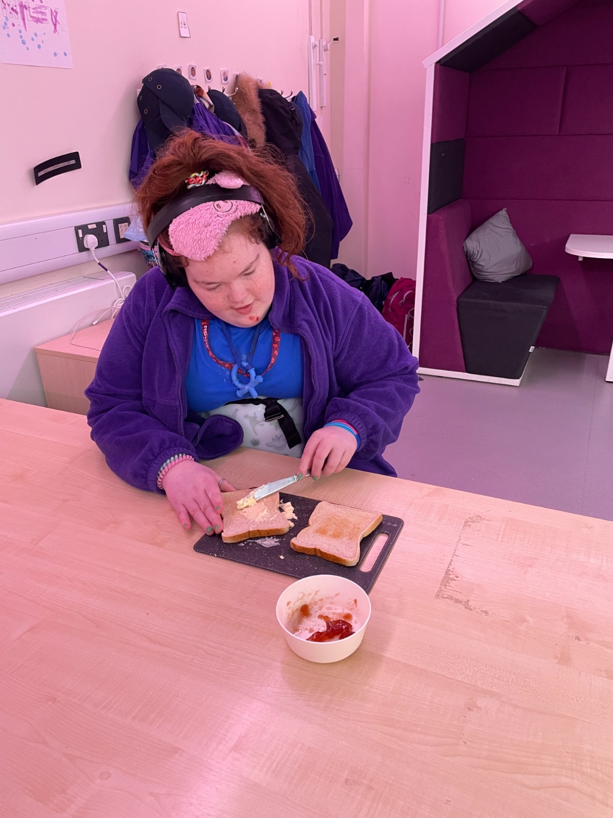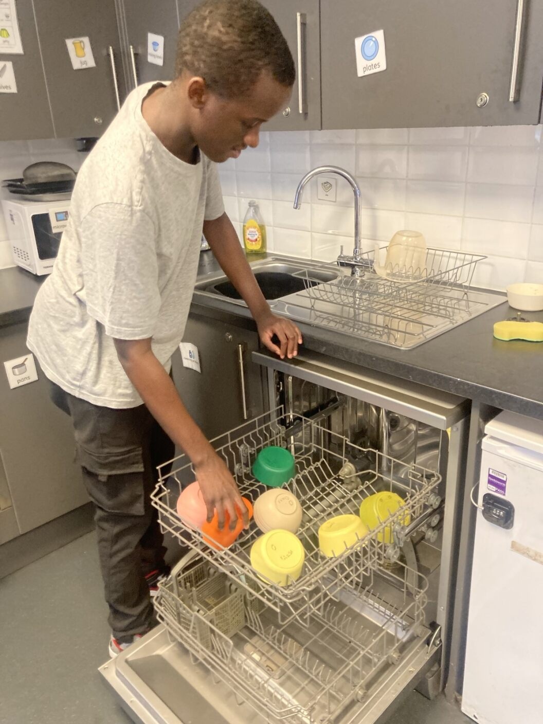 Photos showing our learners engaging in activities on the Catering pathway. This includes hygiene, shopping and learning food prep skills in the classroom before generalising them to the Hub (Endeavour's canteen) and throughout their time in our Post 16 class.