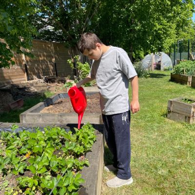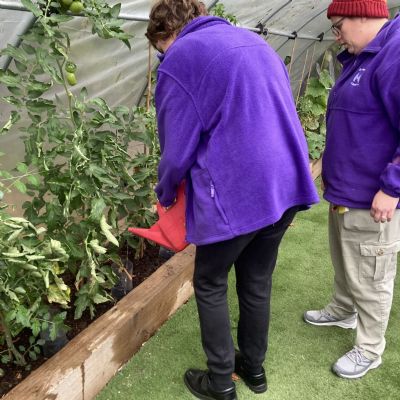 Photos showing our learners engaging in activities on the Horticulture pathway in Endeavour's vegetable garden and during community work experience at Farmability.